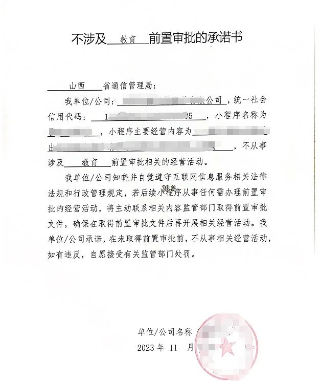 我新申请小程序备案,“互联网信息服务前置审批项”中填写的“都不涉及”,还需要提交《不涉及___前置审批的承诺书》吗