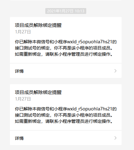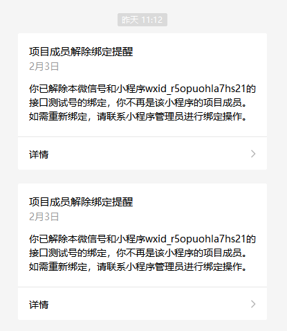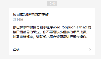 公众平台安全助手上总是出现未知的被绑定为项目成员的接口测试号,多次解绑后都无效,总是第一天解绑后没有了,第二天看的时候又有了