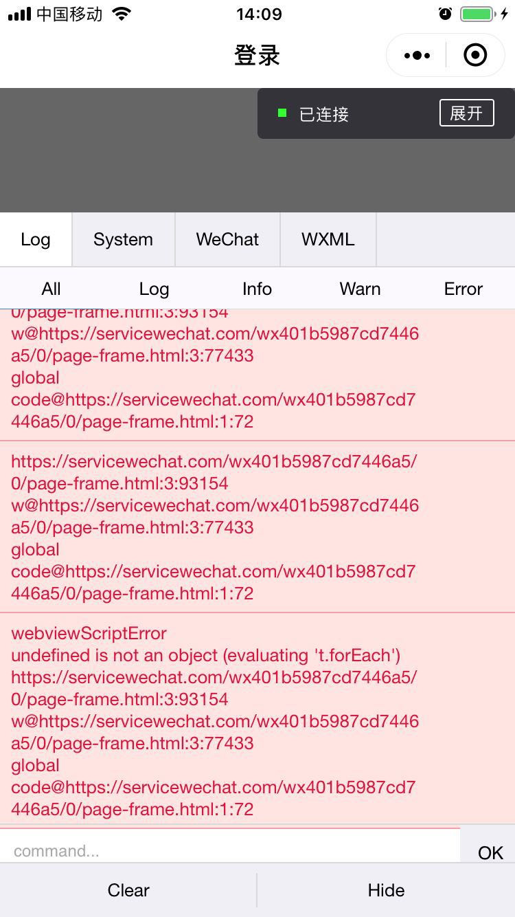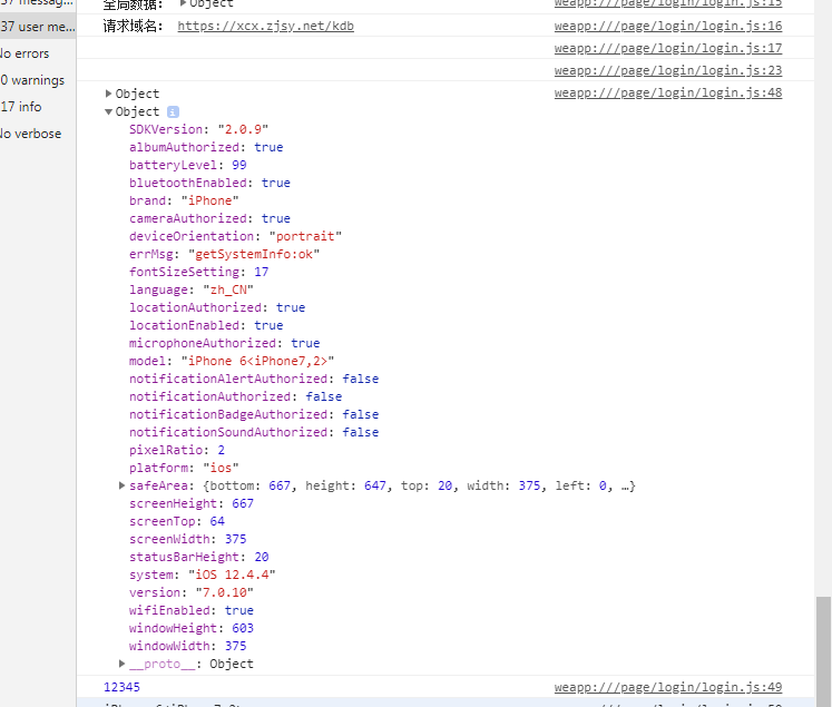 这是ios的信息: 小程序工具运行正常,但在ios真机上就报错误如下: