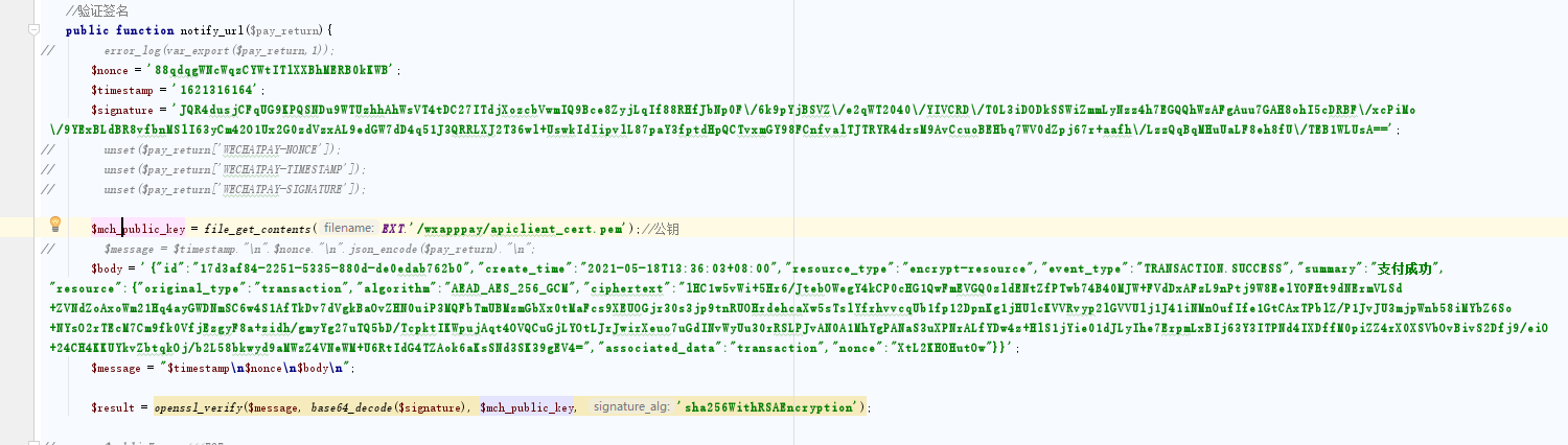 encrypt_certificate=>平台公钥(平台发送过来的数据都是用平台私钥签名的)