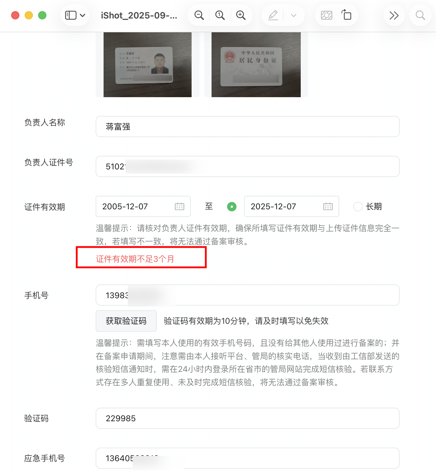 收到通知要更新小程序备案,但是在处理过程中提示负责人的身份证有效期不足三个月。换证也需要时间,但是这个备案更新又要求9月29日之前完成。无法在限期之前处理的话会有什么影响?