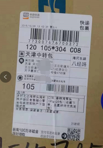 如下图1为扫描识别的快递单条码,调取微信扫描识别出来的,测试多次,多次的结果都不一样(如图2~4)。