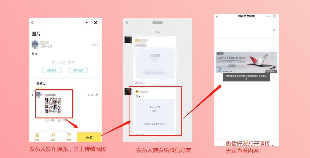 我们申诉后,审核人员认为我们小程序“可以上传敏感图片并转发给好友”