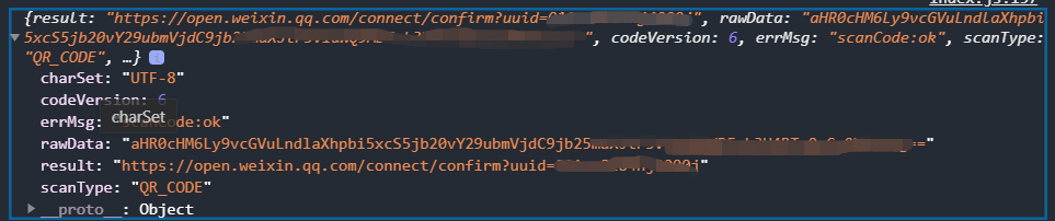 这是微信小程序内调用微信扫一扫,扫码之后的结果: