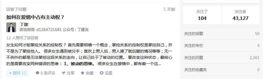 我认为,我的每篇文章都是基于正经的婚姻和长期关系,去认真的探讨恋爱和爱情的规则,并且让更多的人可以深入的理解爱情,理解人性,换位思考,可以让每段恋爱关系都能更加简单,获得幸福,我始终相信爱是一种可以被学习的能力,并且也坚持如此的做着。