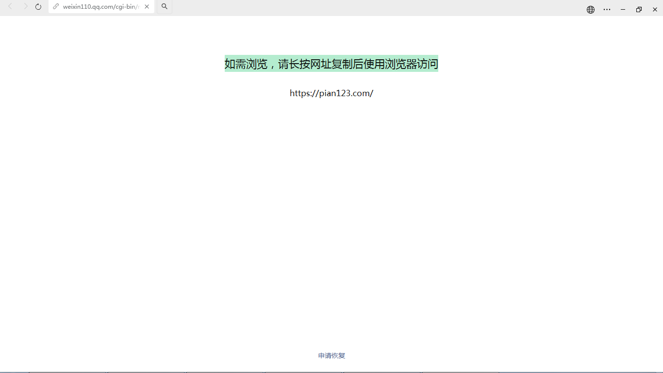 您好,https://pian123.com,域名备案是正常的,浏览器访问正常,我是网站开发者,微信访问网站出现“如需浏览,请长按网址复制后使用浏览器访问”,经检查网页已整改,且已进行过备案,腾讯安全-网址安全中心检测也没有发现风险,并且微信内提交申诉也没有结果,请核实后帮忙解除拦截,谢谢。
