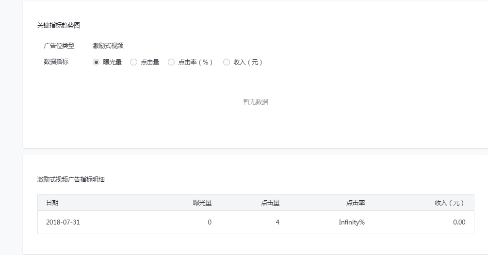 广告开通第一天的曝光量为0,点击率为Infinity,请问下是否是后台的bug。另外想了解下今天还没有8月1号的数据,广告数据一般是多久才更新一次的呢?