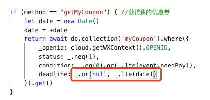 业务:如果没有设置过期时间的优惠券可以一直使用,所以现在需要把没有设置的和不小于当前日期的数据找出来