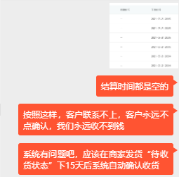无需发货的订单,一直处于待收货状态下不存在15天自动确认,而且超过48小时根本无法在线联系买家需要一个个打电话去通知,客户只要不确认永远收不到钱