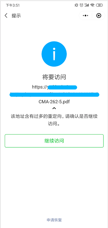 点击继续访问,IOS可在当前提示页打开,安卓无反应。