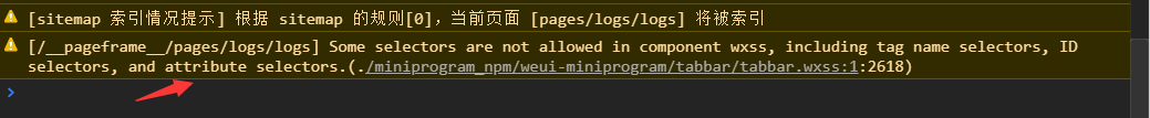 在log页什么都没做有Some selectors are not allowed in component wxss, including tag name selectors, ID selectors, and attribute selectors这个提示?