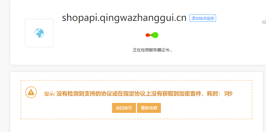 域名的SSL证书不完善。检测网址:https://myssl.com/ssl.html