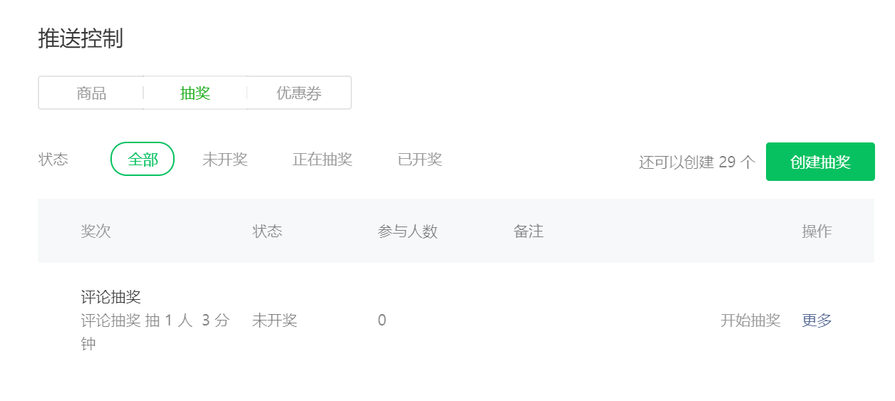 只能够由后台开始抽奖,没办法在后台把这个抽奖的推送给主播。