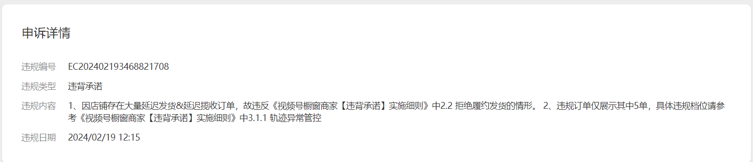 《视频号橱窗商家【违背承诺】实施细则》https://support.weixin.qq.com/cgi-bin/mmsupportacctnodeweb-bin/pages/nkTpiypd1bKfg6Xz