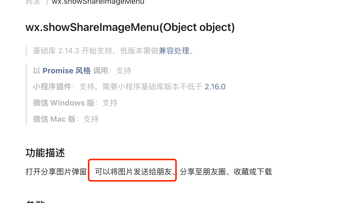 wx.showShareImageMenu 请问部分手机分享时没有“分享到朋友圈”是什么原因? 还有点击“发送给朋友”和“分享到朋友圈”这些功能点击的时候能在wx.showShareImageMenu 的success回调参数里能加一下点击类型的数据吗?
