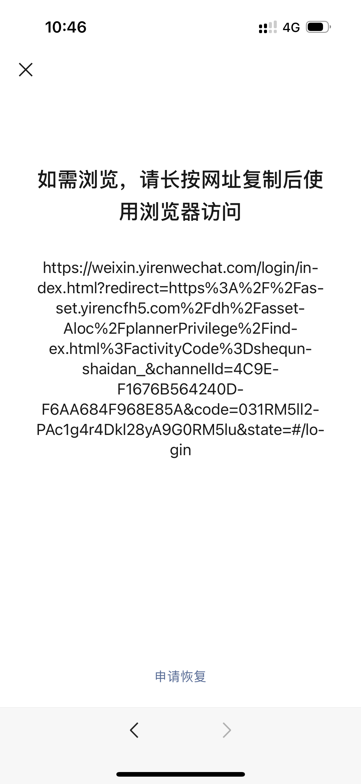 https://weixin.yirenwechat.com/login/index.html?redirect=https%3A%2F%2Fasset.yirencfh5.com%2Fdh%2FassetAloc%2FplannerPrivilege%2Findex.html%3FactivityCode%3Dshequnshaidan_&channelId=4C9EF1676B564240DF6AA684F968E85A&code=041al1100nb8HU1DbF3005EXg61al11q&state=#/login |