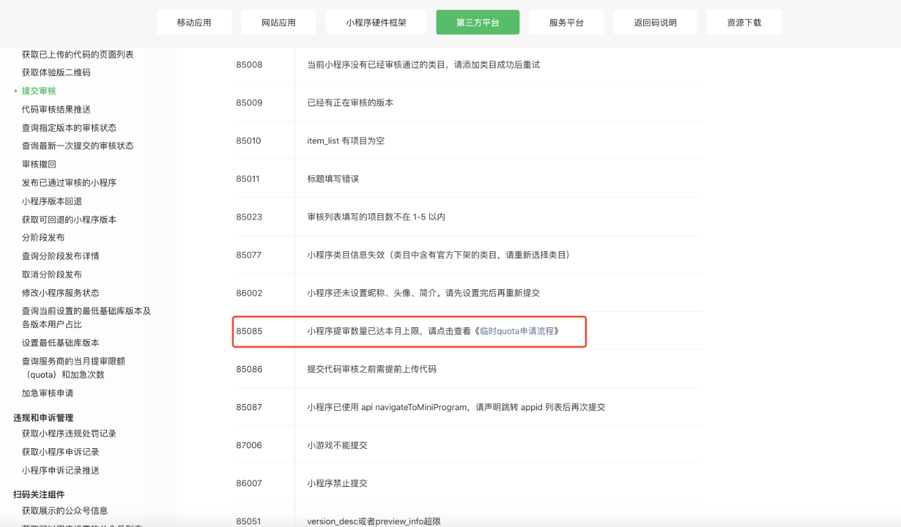 提交小程序审核返回85085错误,请问小程序提交审核上限次数是多少?可以申请提高上限吗?