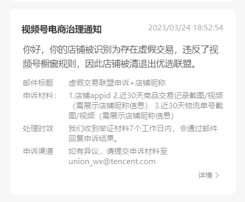 24号当天也是突然来了一条信息,没有任何提醒,或者明确指出店铺哪一笔交易是违规的,或者存在虚假交易,然后直接被清退出优选联盟。