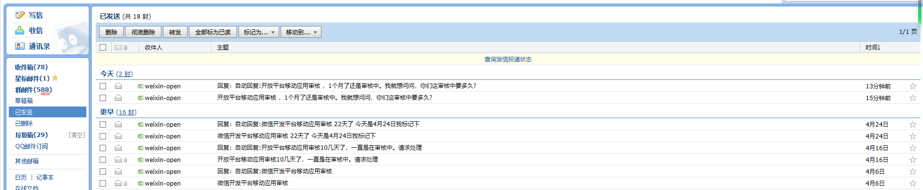 麻烦官方审核大大给看下,微信开放平台邮箱q2612546@126.com,非常感谢。 邮件也发了总是石沉大海,客户心里难受。