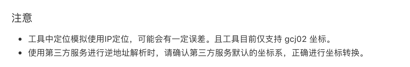 开发者工具清缓存之后,获取地理位置,在地图上,定位不准。本人在苏州,给出的经纬度定到南京去了。手机上确定定位是正常的。只有开发者工具上有这个,请自查一下。