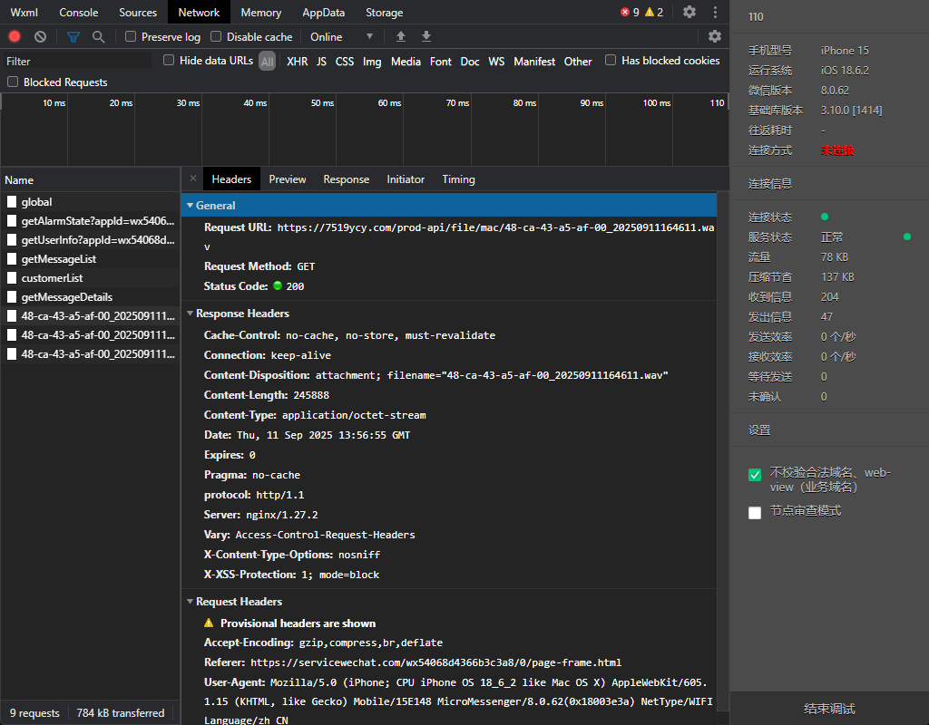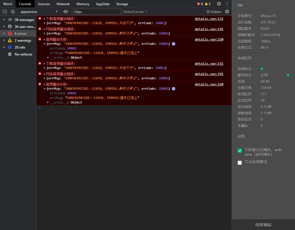 播放一个 wav格式的文件 但是请求直接播放 以及下载下来播放都试过 在开发者工具可以播放在真机播放不了 不知道为什么 代码已经放上去了