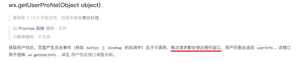 wx.getUserProfile 的业务逻辑是,每次请求都会出现授权窗口,至于是否需要弹授权窗口,由开发者自行维护
