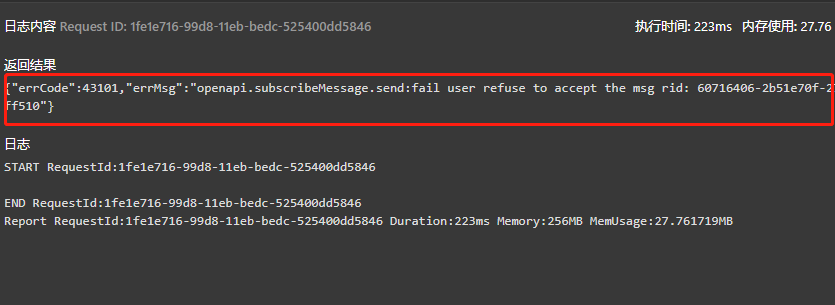 这里我自己授权自己的openid 然后发给我自己消息,然后授权完成也accept了为什么一直43101