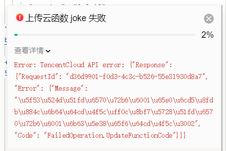 Error: TencentCloud API error: {"Response": {"RequestId": "d36d9901-f0d3-4c3c-b526-55e31930d8a7", "Error": {"Message": "\u5f53\u524d\u51fd\u6570\u72b6\u6001\u65e0\u6cd5\u8fdb\u884c\u6b64\u64cd\u4f5c\uff0c\u8bf7\u5728\u51fd\u6570\u72b6\u6001\u6b63\u5e38\u65f6\u64cd\u4f5c\u3002", "Code": "FailedOperation.UpdateFunctionCode"}}}