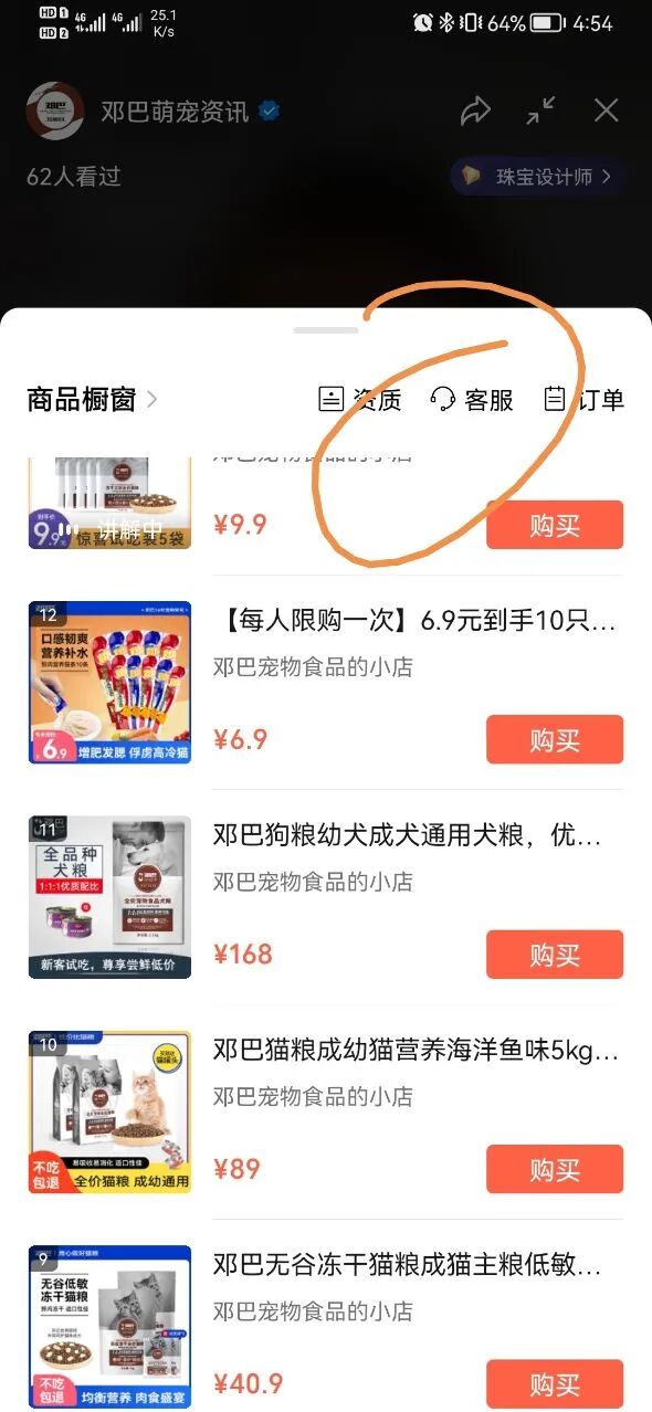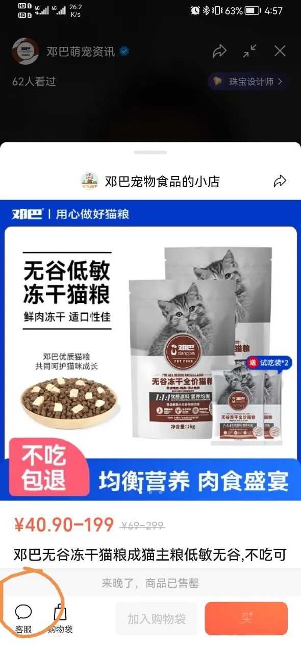 如果多点击一下商品,再点击右下角的客服(如下图所示)