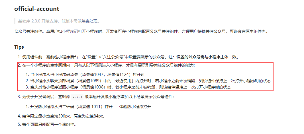 https://developers.weixin.qq.com/miniprogram/dev/component/official-account.html