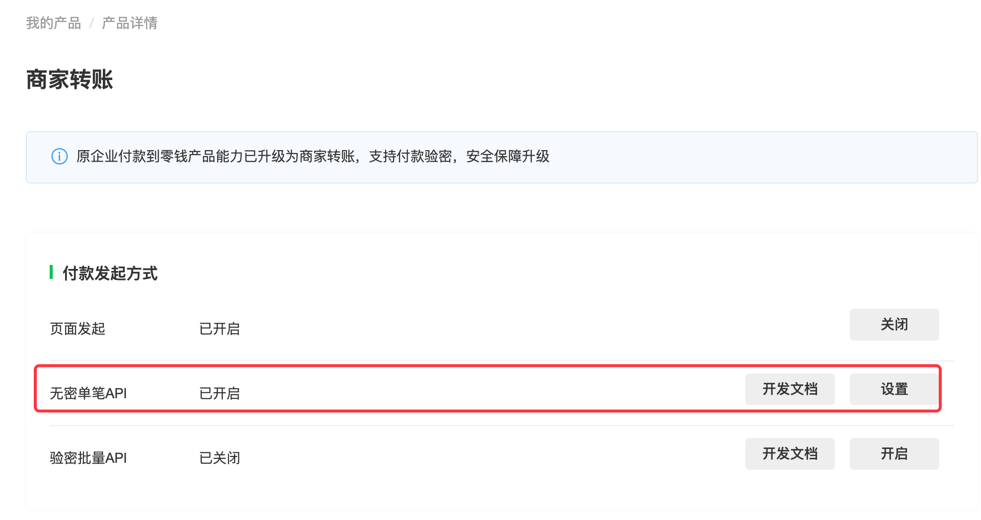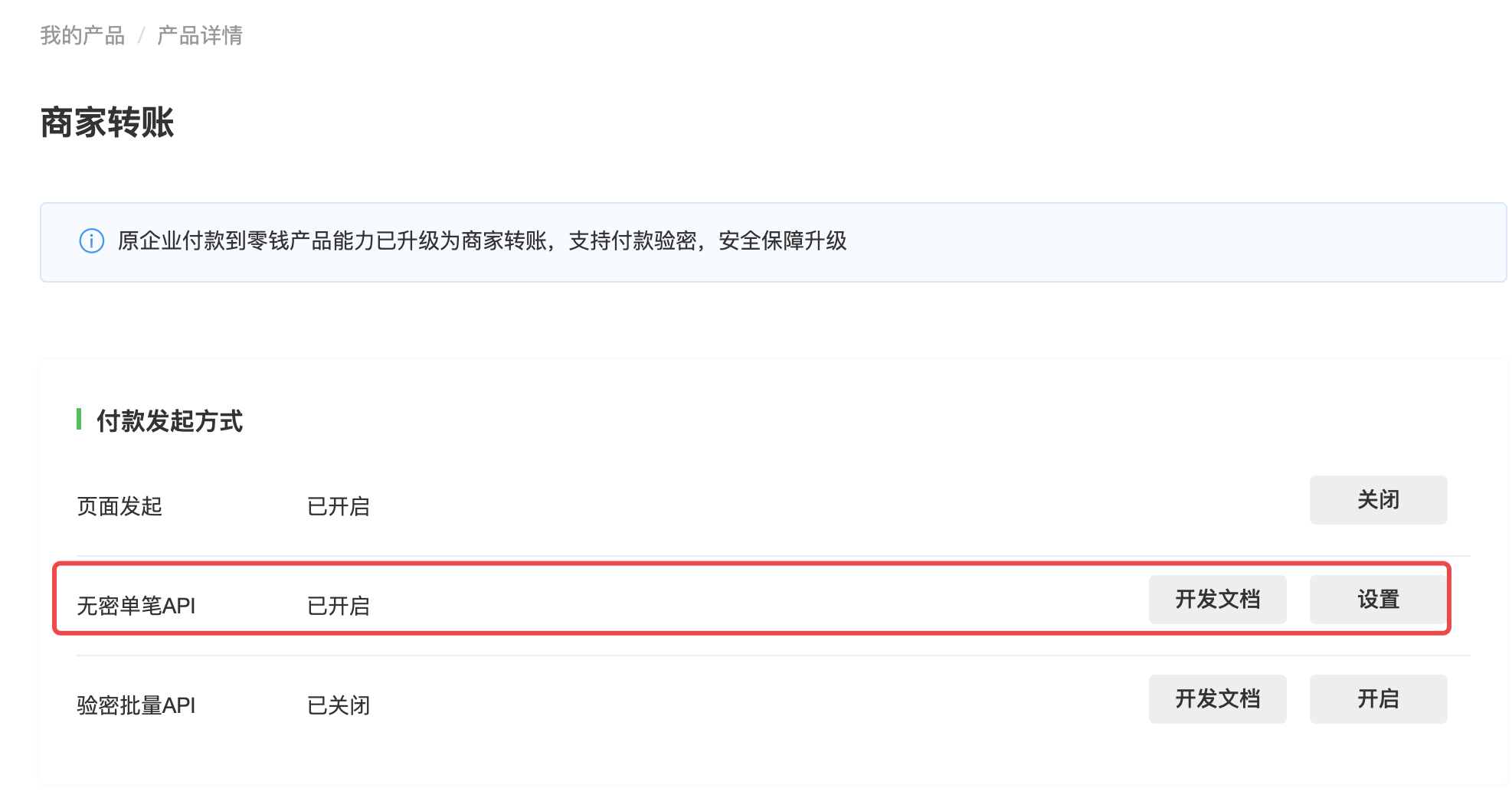 商家转账到零钱 提示 {"code":"NO_AUTH","message":"本商户号未配置API发起能力","httpCode":403}