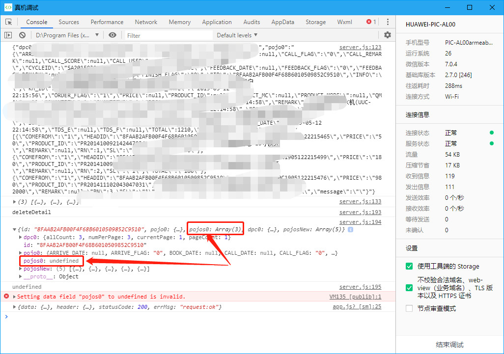 最后你setData就是把pojos设置成undefined了(控制台也提示了)