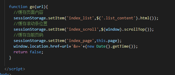 js跳转,跳转前缓存一下当前页面内容,然后返回时,发现页面的JS全部失效了。不知道什么问题。求大神。再次点击a标签,无法跳转,而且全部的js都失效了。