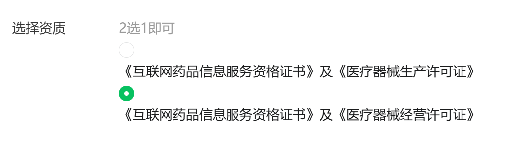 小程序类目上,你是需要《互联网药品信息服务资格证书》及《医疗器械经营许可证》