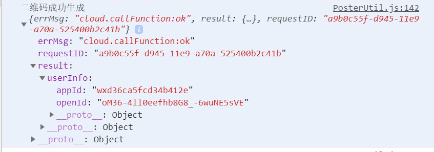 下面是打印的log,result里面没有想要获取到的buffer就是小程序码