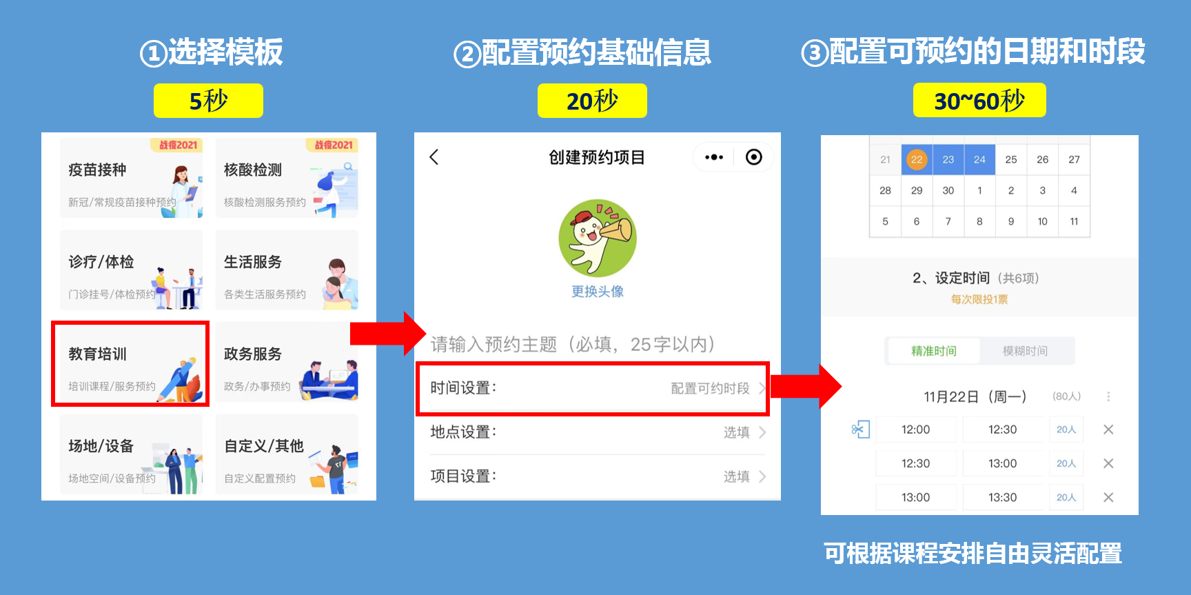 以下基于我们的真实案例,给题主具体介绍一下教练/课程的在线预约、以及配套的多次提醒消息发送是如何实现的(从0开始配置搭建,总共也只需要5分钟就能完成)。