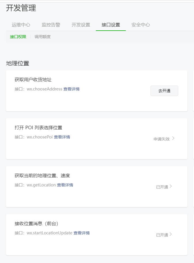 试试申请获取模糊地理位置接口?精确地理位置接口很难申请成功的。