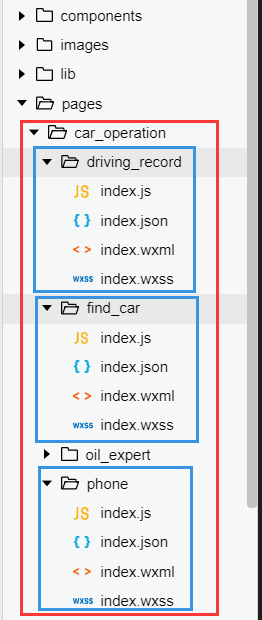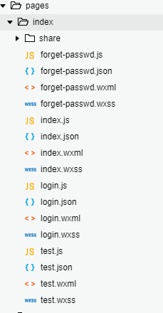 我一般没有.json和.wxss,所以每个page只有两个文件,显得简单