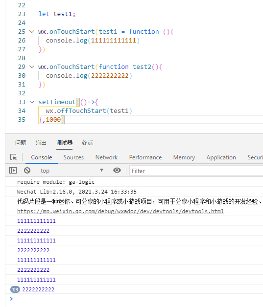 微信小游戏里面注册了两个wx.onTouchStart事件,有什么方法能去掉第一次注册的wx.onTouchStart事件吗?