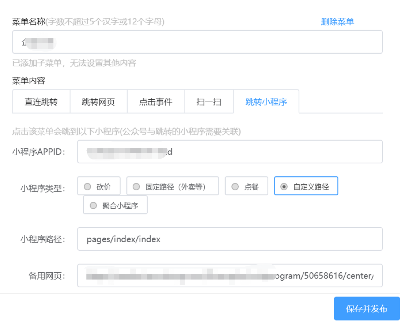 我们微信公众号菜单授权给第三方,从第三方设置的跳转小程序,输入了appID 和 小程序路径 ,点开菜单提示页面不存在,然后点右上角三点菜单刷新一下就出现了。路径是获取的,没有加.html 请问这是什么原因?