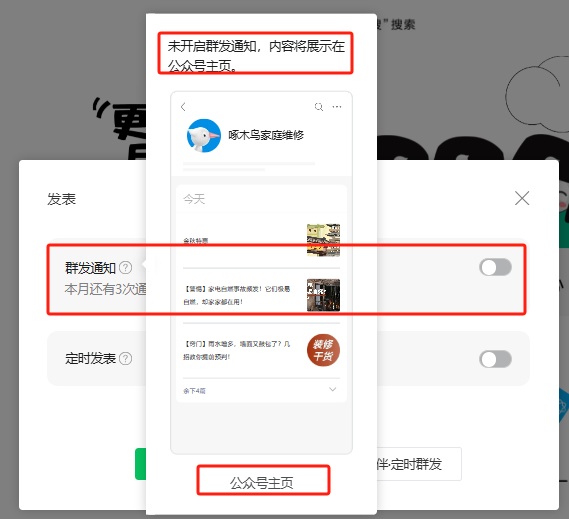 那我的文章没有开启群发通知,意味着根本不会在消息列表内展示,只会在公众号主页展示。