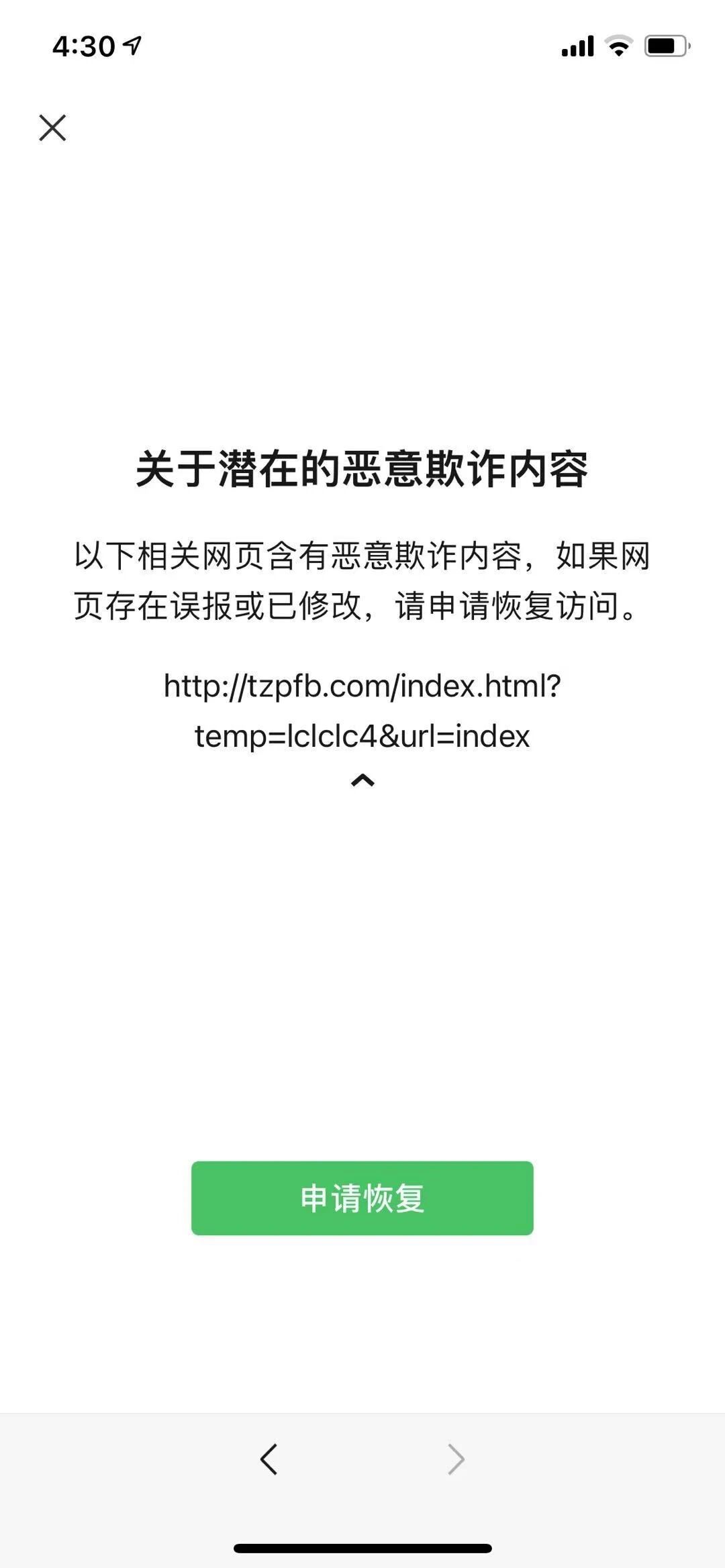 你好,经核实,域名tzpfb.com下的链接【http://tzpfb.com/index.html?temp=lclclc4&url=index】的违规内容已经修改,现已恢复微信内直接访问的服务,请知悉。