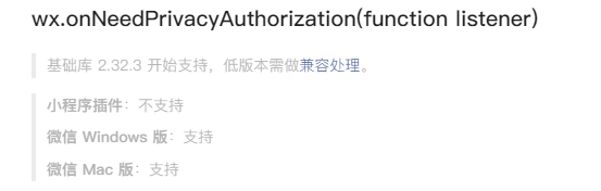 wx.onNeedPrivacyAuthorization对微信版本有要求吗?我们有些ios手机,微信版本8.0.18以及其他低于8.0.30的用户使用会报错