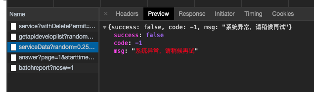 然后手残按了下F12,发现还有另外一个接口服务返回“系统异常,请稍后再试”