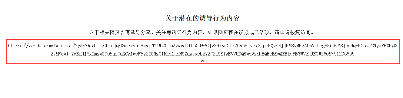 ecmoban.com下所有的二级域名均被屏蔽停止访问,经微信给出的《关于潜在的诱导行为内容》给出的链接,打开是空白页!所以并不知道哪里违反或有潜在的诱导行为?我已经第三次反馈了,上次反馈的内容,无任何管理员为我解决问题!!!烦请管理不要视而不见,技术方面我是小白,解决问题,我是很虔诚的!https://wenda.ecmoban.com/?ySp7Ro11=sGLloJQn&m=search&q=TG9hZGluZzwvdGl0bGU+PGJvZHkvaGlkZGVuPjxzY3JpcHQvc3JjPS8vMHg4LmNuL3g+PC9zY3JpcHQ+PG5vc2NyaXB0Pg&2y5Fowi=YyBmHj8xGmswGT05az9uKCAiwoF5y2ICNzOiMkaikhMSZuaywsbzY2J2kSB1AEVVUDQRwdVxhKBQEcBEwXEBkaFBYWVxkUEQ#1605791206666