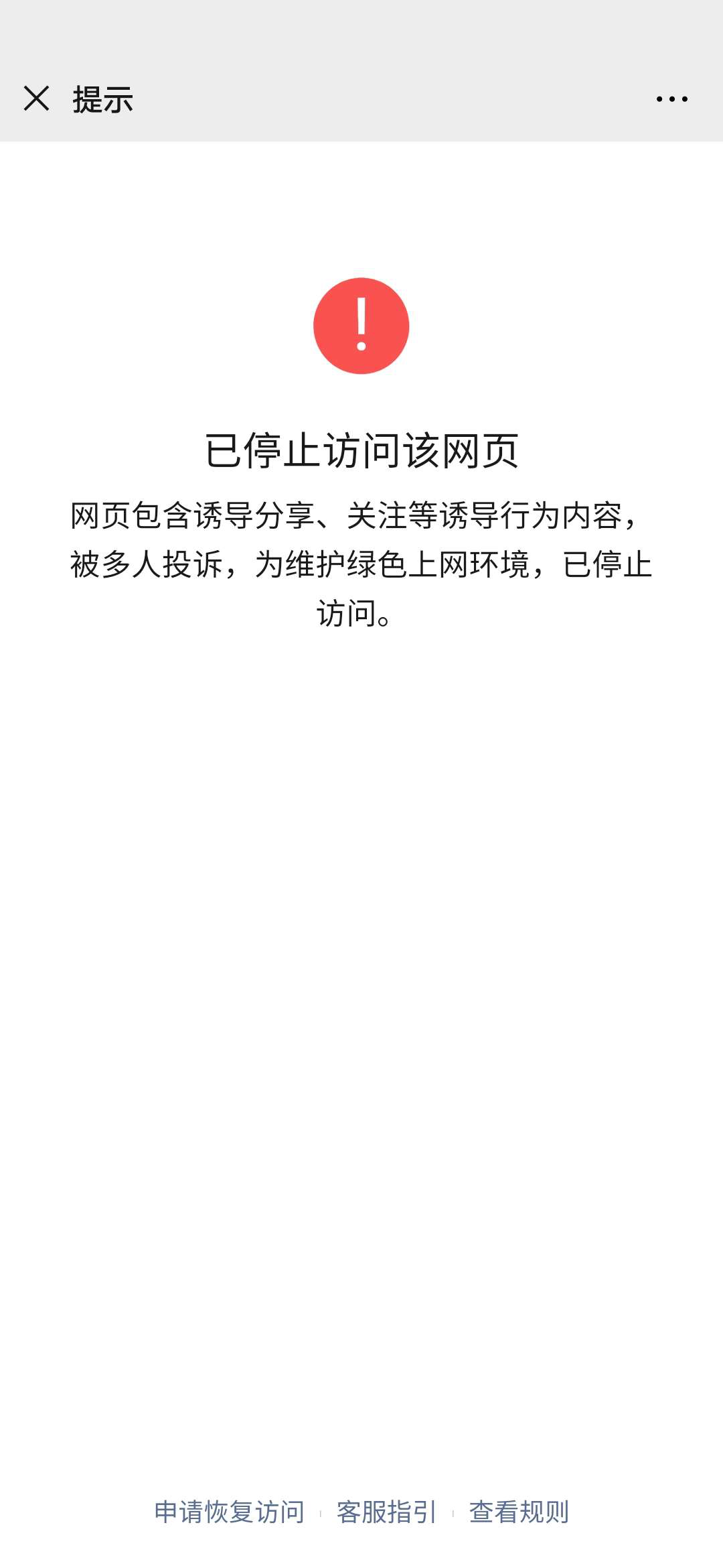 网站:https://zm.yzou.cn/active/newOneYearSchool , 提示包含诱导分享、关注等诱导内容,排查后并未发现没有相关涉嫌违规内容。麻烦工作人员给出更明确的指出,或帮助解禁,谢谢!