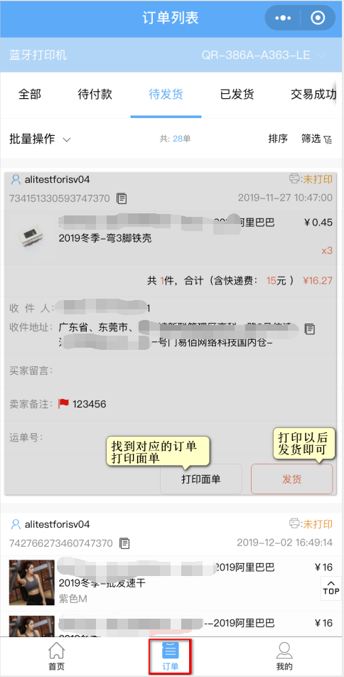 店管家打单软件手机端小程序可以用蓝牙连接打印机直接批量一键打印快递单发货。具体操作可以直接咨询店管家打单软件官网(http://www.dgjapp.com)在线客服。