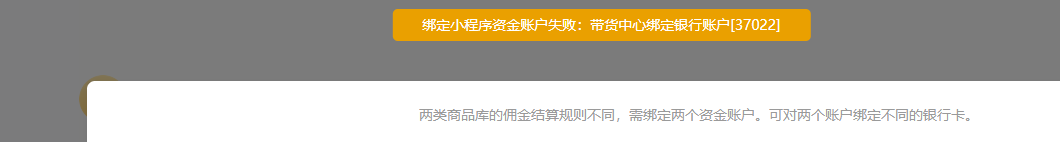 小程序资金账户一提交绑定信息就提示绑定失败,是什么原因,推广的钱也收不到吗?请官方解答