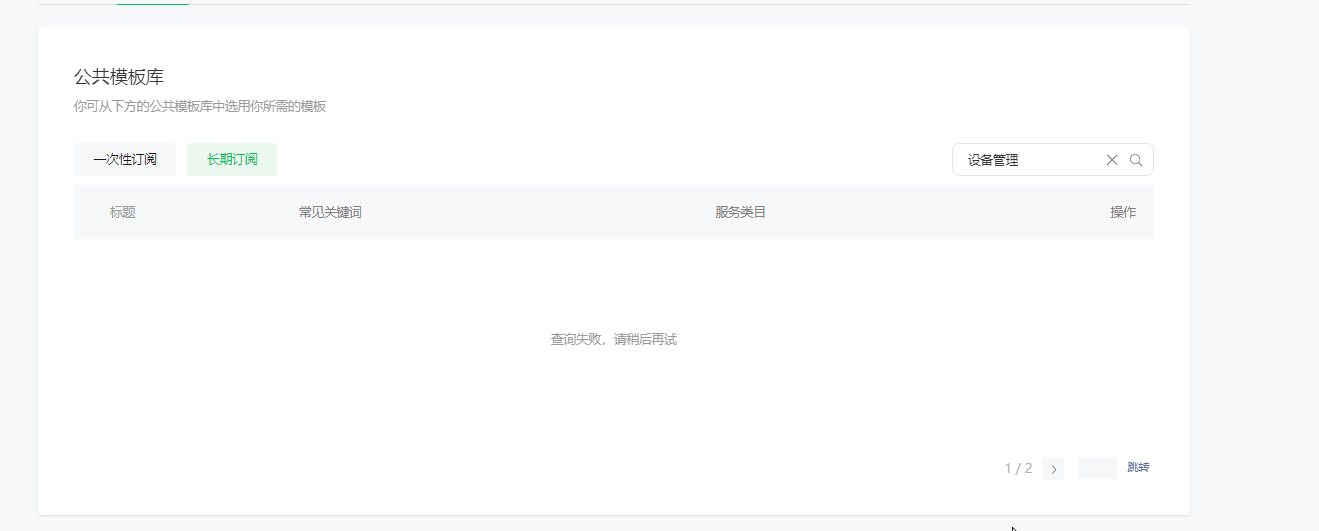 完成了设备接入,设备也获得了消息能力,订阅消息-公共模板库-长期订阅为空