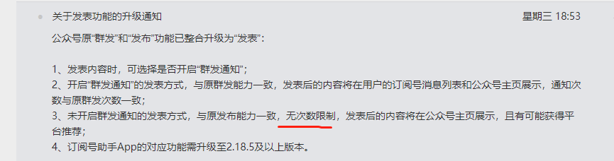 不开启群发通知就是之前的发布,一天可多次发布,没有次数限制。